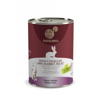 Equilibria pentru cani adulti este o hrana umeda fara gluten si cu un continut 100% de carne de iepure. Este o hrana preparata cu carne de cea mai buna calitate, fiind destinata consulului uman si este imbogatita cu triptofan, valeriana si roinita, care sunt ingrediente benefice asupra intolerantelor alimenatare. Equilibria Dog Carne Iepure este o hrana umeda gustoasa cu o singura sursa de proteina si este usor digerabila. Ingrediente: 100% carne de iepure, substante minerale, ierburi aromatice ( triptofan, valeriana si roinita). Analiza garantata: proteine 6.5%, fibre 0.5%, grasime 4.5%, reziduu de cenusa 2%. Aditivi nutritionali: Vitamina A-1220 U.I./kg, Vitamina D3-150 U.I., Vitamina E-11 mg/kg, taurina-490 mg/kg, sulfat de cupru pentahidrat-4,8 mg/kg, (Cupru 1,2 mg/kg), Umiditate-81%.