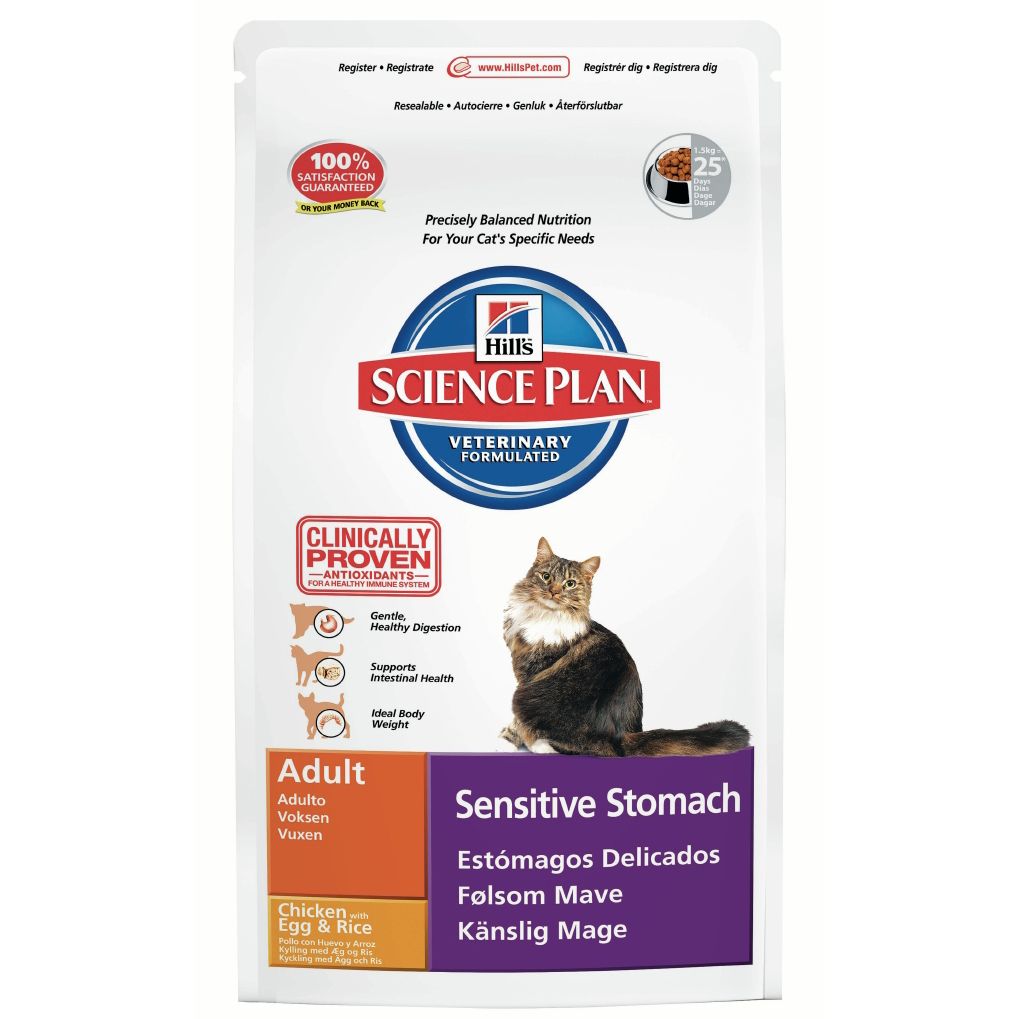 Hill's SP Feline Adult Sensitive Stomach este o hrana uscata creata special pisicilor adulte din orice rasa care sufera de sensibilitate digestiva.