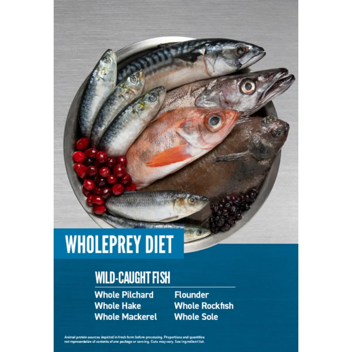 Sardine crude intregi (28%), peste-hake crud intreg (7%), macrou crud intreg (6%), cambula cruda (5%), peste-rockfish crud intreg (5%), peste-sole crud intreg (5%), macrou deshidratat (5%), hering deshidratat (5%), whiting albastru deshidratat (5%), ulei de pollock (5%), peste alb deshidratat (5%), sardina deshidratata (4%), ulei de floarea-soarelui, linte rosie intreaga, linte verde intreaga, mazare intreaga, fibre de linte, naut intreaga, fasole pinto intreaga, amidon de mazare, alge marine uscate, dovleac proaspat intreg, dovleac butternut proaspat intreg, dovlecel proaspat intreg, morcovi proaspeti intregi, mere proaspete intregi, pere proaspete intregi, radacina de cicoare uscata, kale proaspat, spanac proaspat, frunze de sfecla proaspete, frunze de nap proaspete, merisoare intregi, afine intregi, fructe de Saskatoon intregi, turmeric, ciulin de lapte, radacina de brusture, lavanda, radacina de nalba, macese.